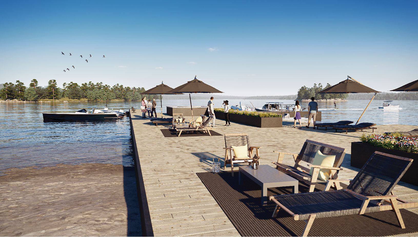 There is nothing better than living steps away from the lakefront. Residents of The Summit Towns can enjoy their own private beach, along with their own private boat dock. There is plenty of space to enjoy water-related activities, along with beachfront amenities including bbq’s, fire pits, dining areas, and a peaceful yoga/meditation area.